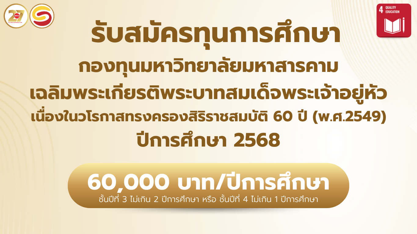 ทุนการศึกษาละ 60,000 บาท ต่อภาคการศึกษา