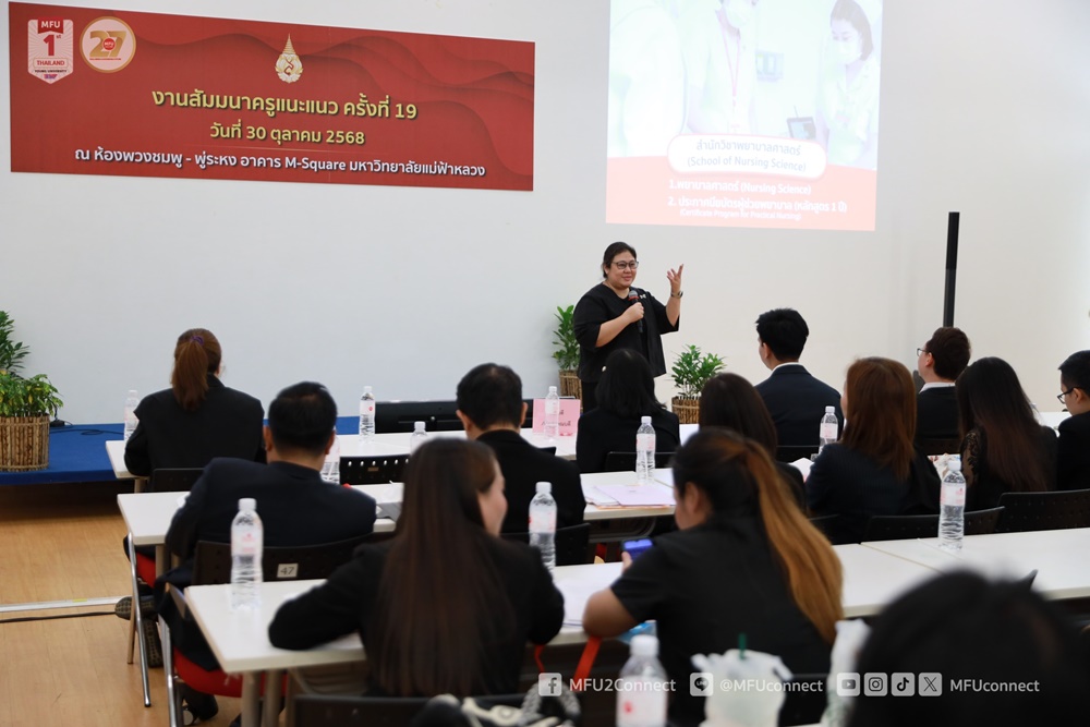 เมื่อวันที่ 30 ตุลาคม 2568 มหาวิทยาลัยแม่ฟ้าหลวง (มฟล.) โดยฝ่ายรับนักศึกษา ส่วนทะเบียนและประมวลผล จัดงานสัมมนาครูแนะแนว ครั้งที่ 19 ณ ห้องพวงชมพูและห้องพู่ระหง อาคาร M-Square เพื่อประชาสัมพันธ์ข้อมูลหลักสูตรการศึกษา การรับนักศึกษา และสร้างเครือข่ายความร่วมมือระหว่างมหาวิทยาลัยกับโรงเรียนทั่วประเทศ โดยมีครูแนะแนวจำนวน 127 คน จาก 87 โรงเรียน 34 จังหวัด เข้าร่วมอย่างคับคั่ง